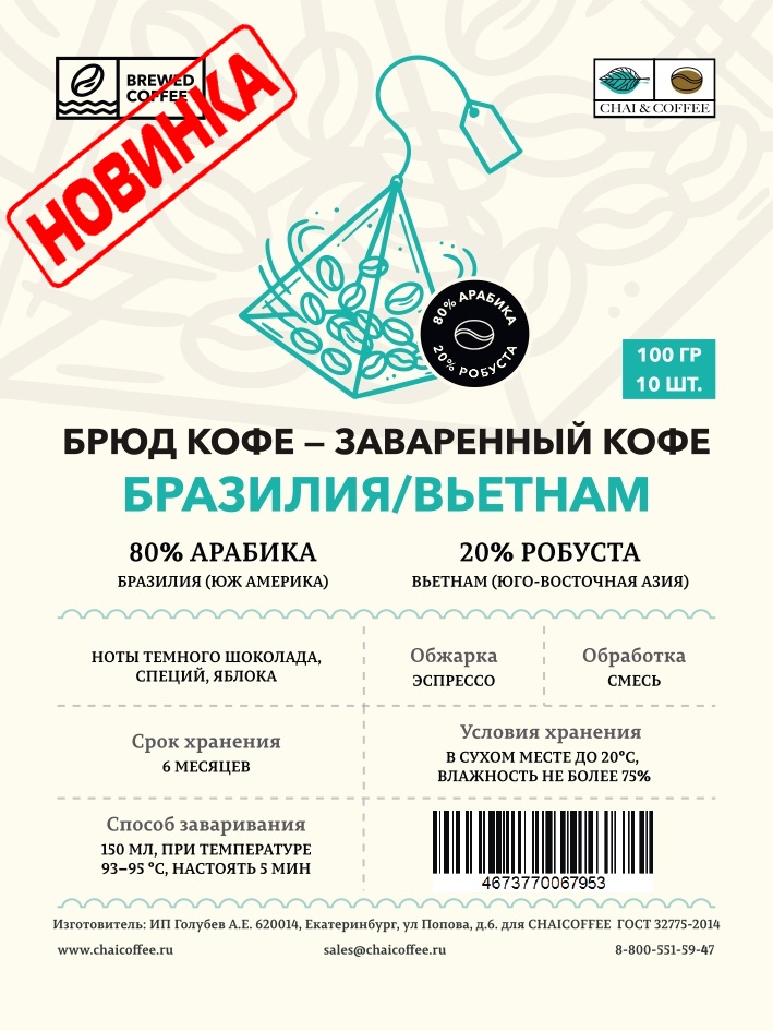 Эспрессо бленд Бразилия/Вьетнам состоит из 80% арабики Бразилия Серрадо и 20% вьетнамской робусты. В его вкусе преобладают ноты темного шоколада и специй с легкой кислотностью яблока и орехово-пряными оттенками. Послевкусие богато насыщенным темным шоколадом. Бленд оптимально подходит для приготовления эспрессо и идеально сочетается с молоком, делая его идеальным выбором для использования в ресторанах и кофейнях.