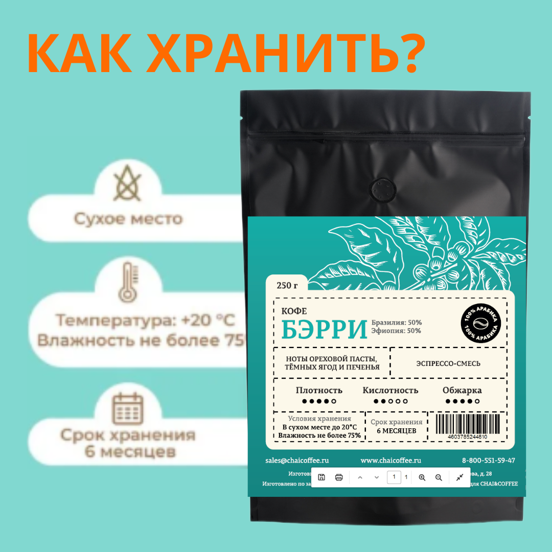 Бэрри - это эспрессо, смесь 100% арабики из Бразилии Суль-де-Минас и Эфиопии Иргачефф.