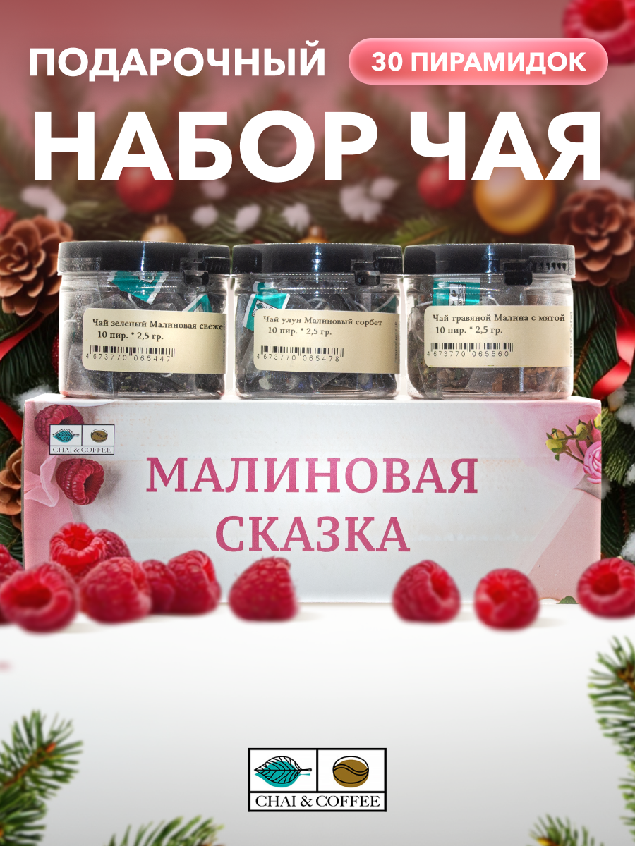 - Чай зеленый Малиновая свежесть 10 пирамидок (10*2,5 гр) в банке для набора